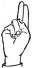 На ћирилици написано МИА СЕРДАР састоји се из 9 слова [?]. Исписано ћириличном једноручном азбуком за глувонеме: